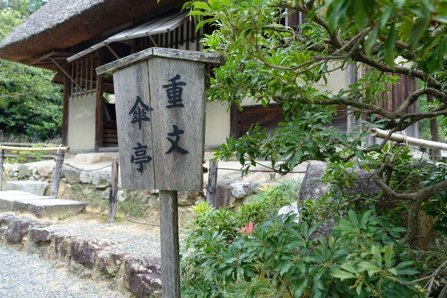 這裡也有一位殷勤的導賞員,很努力地用有限英文講解給我知這兩座建築的歷史。。。同樣列入國家重要文物,傘亭是根據日本茶道始早千利休的想法,利用傳統技術搭建而成。外觀如傘,屋頂覆蓋著茅草,亭頂內以竹木構成傘形,是日本數寄屋的代表建築。