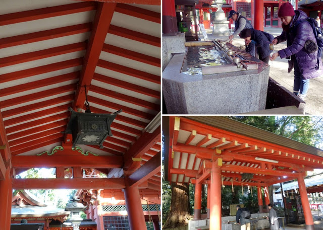 入鄉隨俗,先在手水舍潔淨才踏入神社。先洗左手再洗右手,漱口..我就免,把杓子洗淨放回原處。