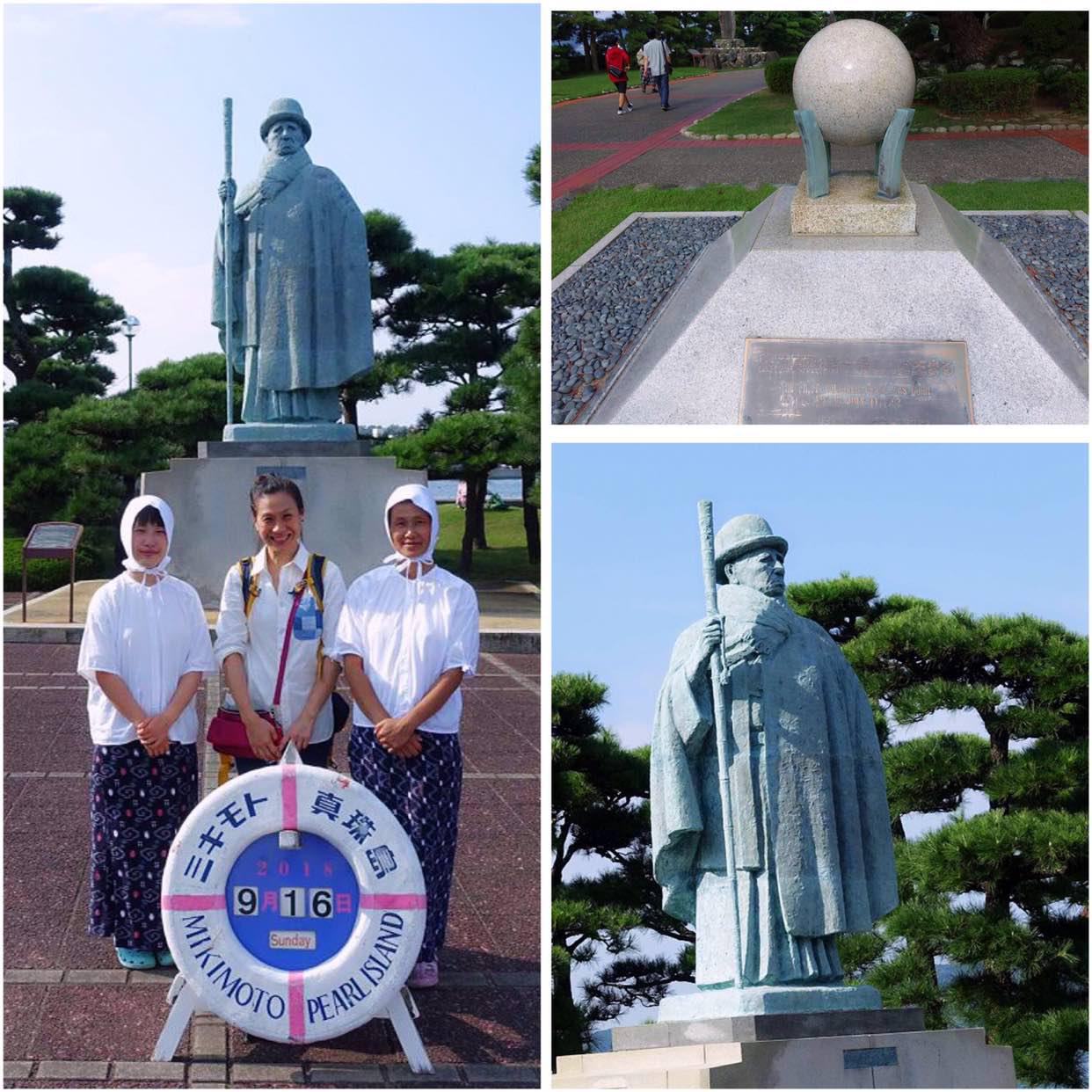 「世界上第一位養殖珍珠成功的人」御木本幸吉先生的銅像。御木本是第一位研發並成功養殖出珍珠,並把‘Mikimoto’成為世界知名的珍珠品牌。‘Mikimoto’就是‘御木本’的英文名。